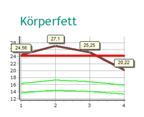 Bei einer angestrebten Gewichtsreduktion, zeigt die BIA Messung im Verlauf, ob du tatsächlich Fett abbaust oder wie bei zahlreichen Diäten, nur Muskelmasse und Wasser.